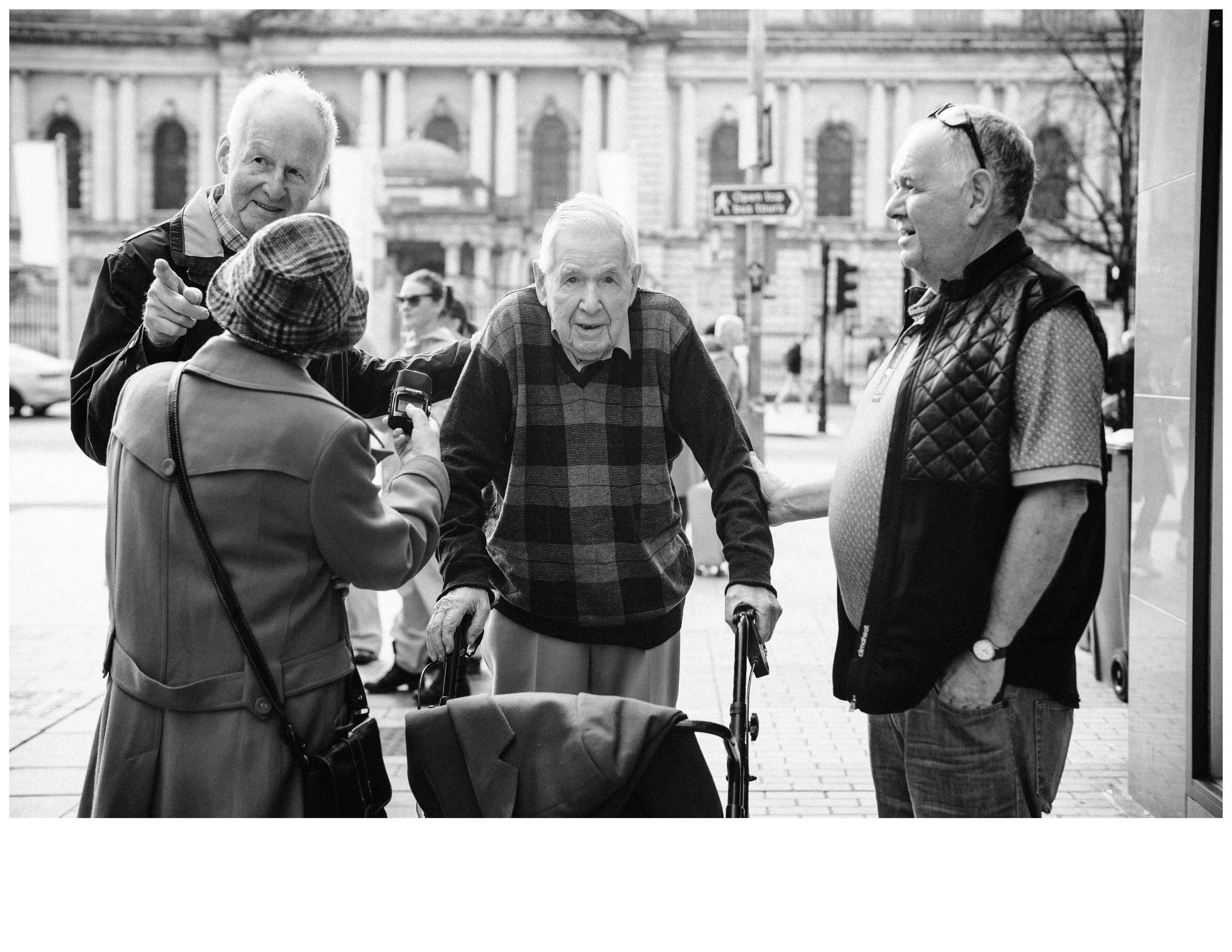 As a useful mnemonic, the old security checkpoints that once surrounded the city center were recalled through architectural drawings and inscribed on the ground on their historical sites. On the sites performers conjured memories of demeaning searches at the four main checkpoints in the ring of steel, affording people meaningful opportunities to explore suppressed memories, have their story heard and have others bear witness to their experience. The one-day ‘occupation’ of Belfast City center provoked a lively discussion about how older inhabitants once experienced these sites as places of conflict, submission, transgression and escapism. The event initiated an unprecedented public discourse about the conflict, its memory and legacy; a discussion that continued in the news media and around dinner tables across the city. Some seven hundred and fifty stories were recorded on the day of Drawing the Ring of Steel. The stories built a nuanced picture of everyday experiences during the Troubles.