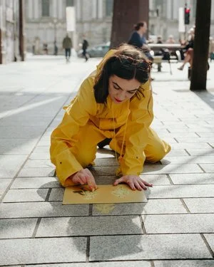 Drawing the ring of steel was conceived of and designed by Kate Catterall, and the performative memorial event was co-directed with Paula McFetridge, artistic director of the renowned Belfast theatre group Kabosh. The project utilized the idea of the counter-monument, a monument that deliberately “… undermine[s] its own authority by inviting and then incorporating the ‘authority’ of the passerby” (Young, 2008). Counter-monuments, unlike conventional memorials, subvert official narratives, instead offering opportunities for critical reflection and polyvalent remembrance. They are a uniquely effective mechanism for commemoration on contested ground, where the experience of a conflict remains fresh and memorialization is fractured and segregated.